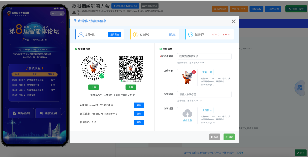 真实案例分享!用「眨眼猫会务智能体」做年会小程序,又快又好又便宜!报名签到查座全配齐。