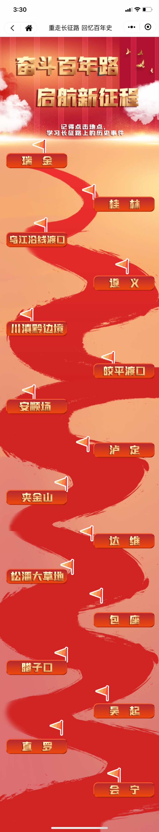 4. 多媒体互动:“重走长征路,回忆百年史”“历史上的今天”(点击地点或日历查看历史事件)这类以多媒体互动形式带领大家学习长征路上的历史事件的活动,让群众生动有趣地学习党史以及党内法规等知识,对增强企业向心力和凝聚力都有很大作用。