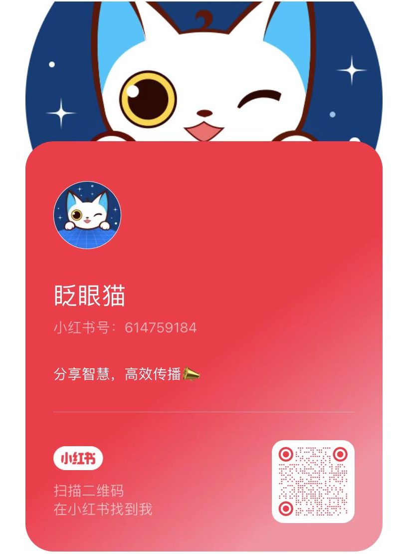 扫描二维码就可以直接跳转到我们的眨眼猫官方小红书号啦~