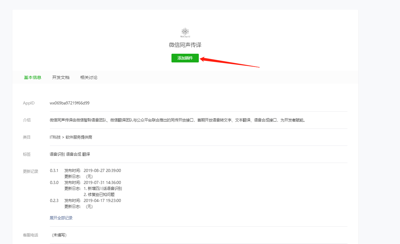 ✦添加:在上面一步点“添加插件”后,搜索“微信同声传译”,然后添加即可。